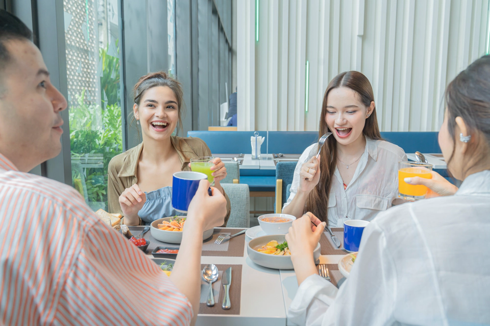 Start your morning in the Great Room, a bright space with floor-to-ceiling windows and a welcoming ambiance. Guests can enjoy the Express Start Breakfast, featuring a continental buffet, fresh coffee, and Grab & Go options, served daily from 6:30 AM to 10:30 AM. Designed for convenience, it’s the perfect way to begin your stay in Bangkok.
